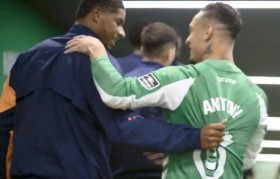 诺坎普的替补席上,马库斯·拉什福德裹着厚...